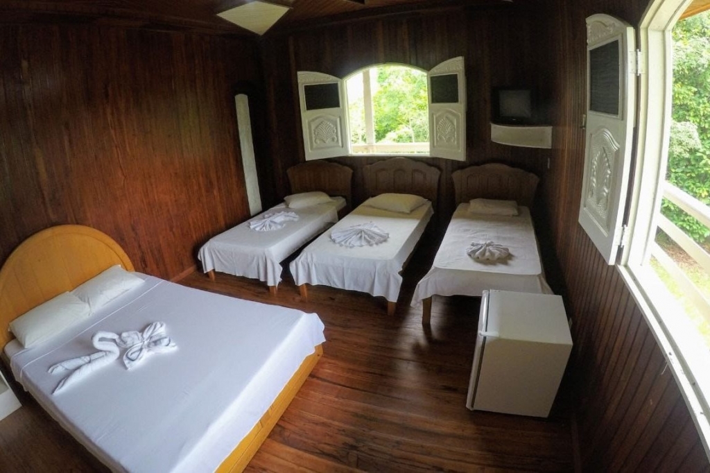 Con capacidad para 4 personas, con una cama doble y una cama individual, una hamacas, con baño privado, aire acondicionado y minibar. La mayoría de los chalets tienen una vista privilegiada al río, rodeados de naturaleza.